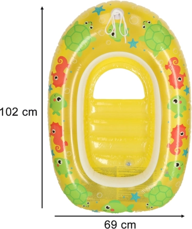 Veseli potiski morskih živalic spodbujajo domišljijo in vabijo k vodnim dogodivščinam. Izdelek je lahek, enostaven za prenašanje in hitro pripravljen za uporabo.