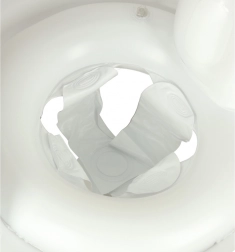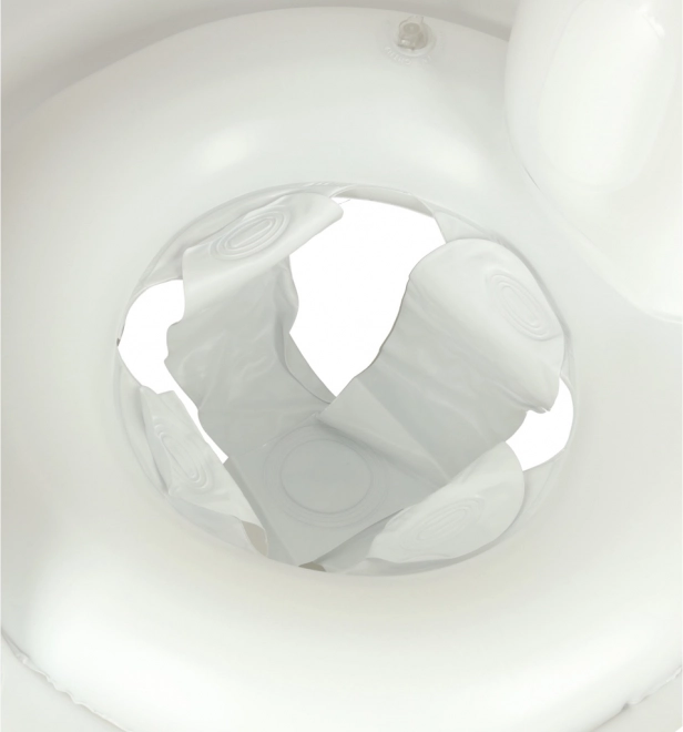 Napihljiv obroč je opremljen z udobnim sedežem in odprtinami za noge, kar zagotavlja stabilnost in varnost.