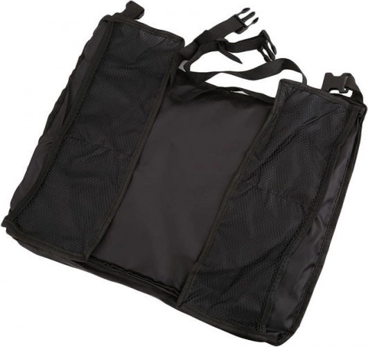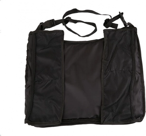 Mizica je izdelana iz trpežnega in vodoodpornega poliestra, enostavno se pritrdi z nastavljivimi trakovi in prav tako hitro pospravi. Štirje mrežasti žepi ob straneh poskrbijo, da so igrače, prigrizki, telefon ali robčki pregledno urejeni.