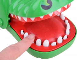 Postanite zobozdravnik pogumnega krokodila! Igralci po vrsti pritiskajo posamezne zobe – eden je »boleči« in ob pritisku krokodil nenadoma zapre gobec. Hitra opazovalna igra za 2 ali več igralcev prinaša napetost, smeh in uri reflekse ter potrpežljivost.