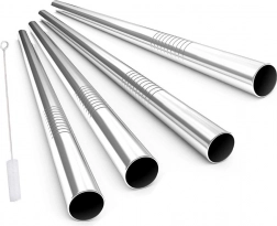 Te kakovostne slamice iz nerjavečega jekla predstavljajo moderno in okolju prijazno alternativo za enkratno plastično uporabo. So trpežne, varne za stik z živili in odlične za vodo, limonade, koktajle ter gosta smoothieja. Zaradi gladkih robov so prijetne za uporabo in pijačam dodajo eleganten videz.