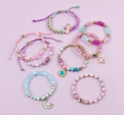Ustvarite čarobne zapestnice, navdihnjene z nebom in zvezdami. Komplet Make It Real Celestial Stones vsebuje bogat izbor kroglic, perlic in obeskov, s katerimi bodo otroci zlahka ustvarili zapestnice po svoji domišljiji. Idealno za skupno ustvarjanje s prijatelji ali kot kreativen dar.