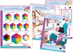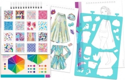 Oblikovalsko portfelje s cvetličnim motivom otrokom ponuja možnost razvijanja ustvarjalnosti z več kot 120 šablonami in nalepkami, idealno za mlade oblikovalce.