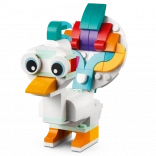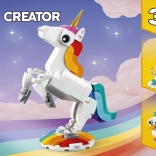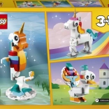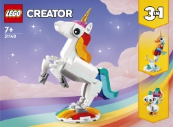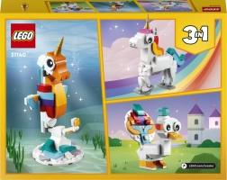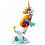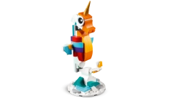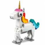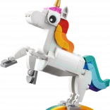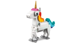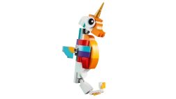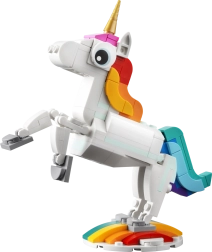 S tem čarobnim kompletom si otroci zgradijo očarljivega samoroga z zlatim rogom, mavričnim repom in premičnimi nogami ter kopiti. Model lahko razstavite na mavričnem podstavku in ga postavite v tradicionalen položaj na zadnjih dveh nogah ali pa stoji na vseh štirih.