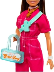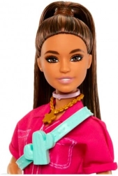 Odkrijte moderen slog in neskončno zabavo s punčko Barbie rjavolasko v rožnatem kombinezonu. Gladki rjavi lasje v visokem čopu, bele čevlje in izraziti dodatki dodajo vsaki igri pridih šarma. Idealno za otroke, ki obožujejo modo, ustvarjanje outfitov in igro mestnih aktivnosti.