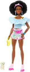 Ta modna punčka prinaša svež poletni slog in veliko možnosti za razvijanje domišljije. Bluza z naborki in črtami, pastelne športne kratke hlače ter rožnate kotalke poudarjajo njen izrazit videz. Ne manjka niti kodrasta afro pričeska, ki dodaja karakter in originalnost.