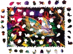 Ta dizajnerska lesena sestavljanka iz trde bukovine vas popelje v svet barvitega kameleona in tropskih listov. Zaradi posebno oblikovanih koščkov, med katerimi so mnogi v oblikah živali in rastlin, je sestavljanje zabavno, ustvarjalno in hkrati nekoliko zahtevnejše kot pri klasičnih sestavljankah.