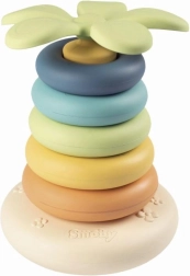 Ta piramida spodbuja razvoj fine motorike, koordinacije oko–roka ter učenje barv in velikosti. Otroci lahko obroče zlahka primejo, zlagajo in odkrivajo principe razvrščanja, kar podpira njihovo logično razmišljanje in potrpežljivost.