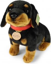 Dodelani detajli, izrazite oči in mehko kožušček naredijo tega jazbečarja popolnega prijatelja za crkljanje in igro.