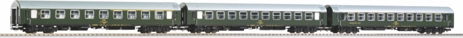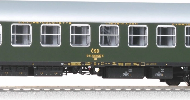 Set treh potniških vagonov ČSD Zahodni ekspres je natančno izdelan z zvestobo zgodovinskim detajlom. Vsi vagoni imajo štiri osi in odlično zajemajo detajle oken, vrat in podvozij.