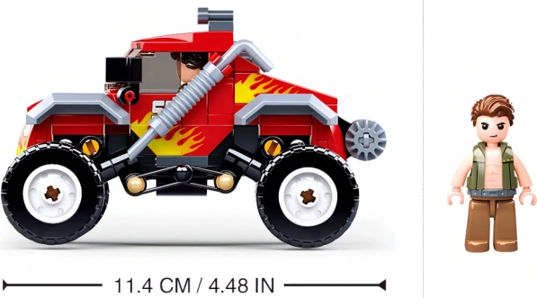 Rdeče terensko vozilo s širokimi pnevmatikami, plamenskimi nalepkami in minifigurico prinaša ure ustvarjalne zabave. Komplet je idealen za otroke, ki obožujejo akcijsko vožnjo po terenu in gradnjo iz kock. Kakovosten ABS plastika zagotavlja dolgo življenjsko dobo in varno igro.