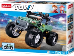 Zeleni monster truck s širokimi pnevmatikami, svetlobno rampo in efektnimi potiski zagotovi akcijsko vožnjo tudi po »grobi« podlagi iz kock.