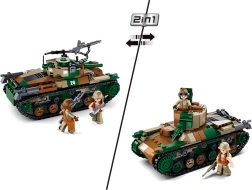 Odkrijte zgodovinsko tehniko z modeli, navdihnjenimi po resničnem srednjem tanku Tip 97, najrazširjenejšem tanku japonske cesarske vojske v 2. kitajsko-japonski vojni. Ta set omogoča sestavo dveh različnih modelov (2v1), kar povečuje zabavo in igralno raznolikost.