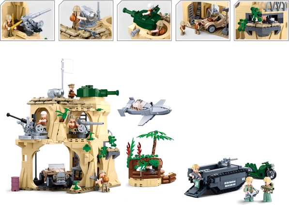 Zgradite oklepno bazo s stražnim stolpom in jo dopolnite z džipom, gosenicnim vozilom, letalom in motorjem. Idealna kombinacija za realistične misije in neskončne scenarije.