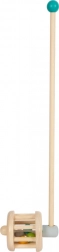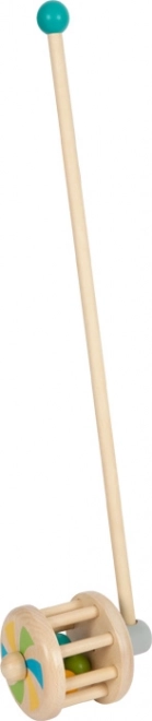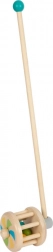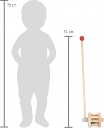 Ta leseni potiskač je idealen pripomoček za razvoj gibalnih sposobnosti in ravnotežja pri malčkih. Ima edinstven dizajn s pisanimi kroglicami, ki pritegnejo otrokovo pozornost in ga spodbujajo k gibanju. Lesena krogla na ročaju, ki jo je lahko prijeti, izboljšuje udobje pri hoji.