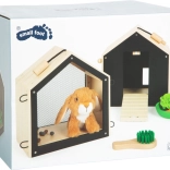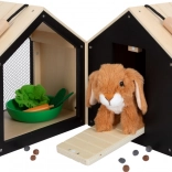 Ljubka set za male skrbnike: stabilen lesen zajčnik z izpustom in plišastim zajčkom. Vsebuje bogate dodatke za realistično igro skrbi za ljubljenčka ter spodbuja ustvarjalnost, empatične veščine in odgovornost otrok.
