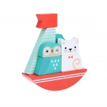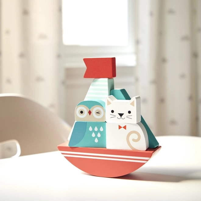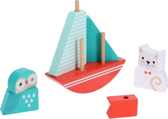 Predstavljamo vam prikupno leseno igračo, idealno za najmlajše raziskovalce. Uravnotežen in sestavljiv čoln z motivom sove in muce ponuja kreativno in poučno zabavo za otroke od 12 mesecev dalje. Igrača je sestavljena iz robustnih lesenih delov, ki so prijetni na dotik in spodbujajo ustvarjalnost.