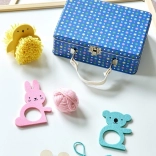 Kreativni set vsebuje pet barvnih prediv, pet živali iz klobučevine in lesen bambulač, vse potrebno za izdelavo lastnih bambulastih prijateljev.