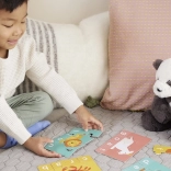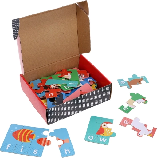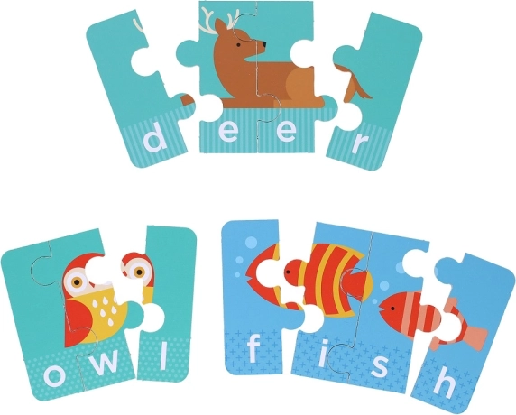 Ta izobraževalni komplet povezuje prikupne ilustracije živali s preprostimi angleškimi besedami s 3–4 črkami. Otroci hkrati sestavljajo sliko in besedo, zahvaljujoč samopreverjevalnim koščkom pa takoj vedo, ali sestavljajo pravilno. To gradi samospoštovanje, naravno širi besedni zaklad in podpira črkovanje.