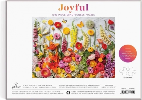 Uživajte v miru in osredotočenosti s sestavljanko GALISON Radost – 1000 koščkov z čudovitim cvetličnim motivom umetnice Julie Seabrook Ream. Sestavljanka spodbuja mindfulness, ponuja vrhunski tisk z neškodljivimi barvami, mat zaključek za verno prikazovanje barv in detajlov ter je izdelana iz recikliranih in trajnostno pridobljenih materialov. Dobavljena v trdni darilni škatli z referenčno sliko.