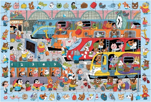 Odkrijte zabavno 2v1 sestavljanko, ki jo otroci najprej sestavijo, nato pa v njej poiščejo več kot 40 predmetov. Barvita scena živahne železniške postaje ilustratorke Marie Neradové razvija opazovalne sposobnosti, potrpežljivost in logično razmišljanje. Kakovostna izvedba iz recikliranega papirja z neškodljivimi barvami in mat zaključkom zagotavlja prijetno izkušnjo sestavljanja.