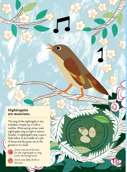 Ta privlačna izobraževalna knjiga iz zbirke My Nature otroke popelje v svet ptic s pomočjo odstranljivih samolepk, pobarvank in preprostega kviza. Z očarljivimi ilustracijami Olivie Cosneau si mali bralci urijo fino motoriko, zbranost in opazovanje narave.