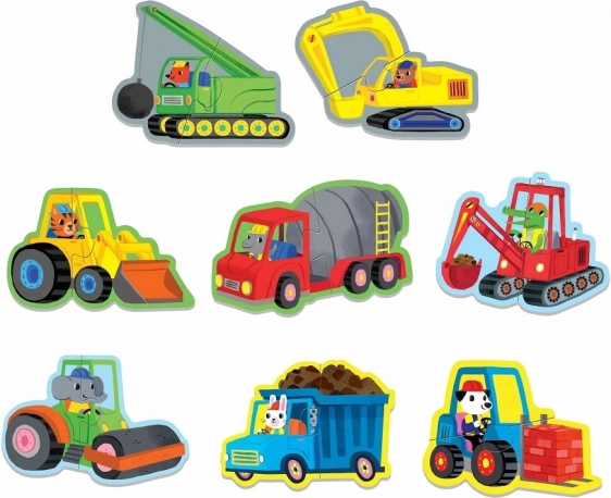 - 8 slik gradbenih strojev – preproste 2-delne sestavljanke