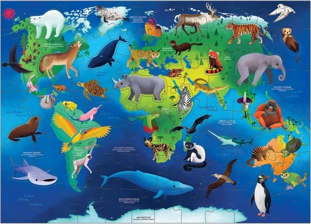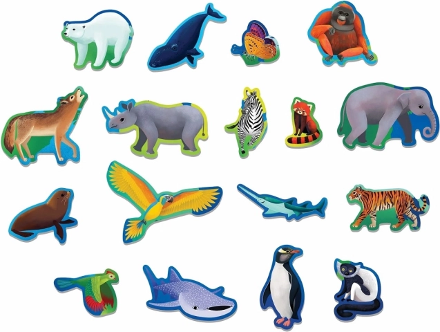 Ta izobraževalna sestavljanka pomaga otrokom bolje razumeti ogrožene živalske vrste na različnih celinah in v oceanih. Poleg klasičnih koščkov vključuje tudi 17 posebej oblikovanih koščkov, ki dodajo dodatno raven zabave in izziva.