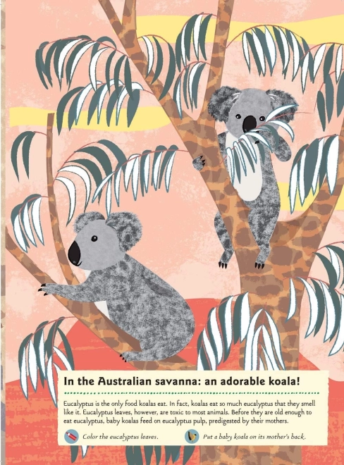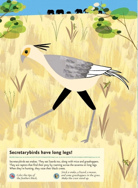 Ta kreativna knjiga aktivnosti otroke popelje v fascinantni svet savan Afrike, Avstralije in Brazilije. Z nalepkami in nalogami si mali raziskovalci zapomnijo zanimiva dejstva ter urijo fino motoriko in zbranost. Naj otroci namestijo rogove impali, skrijejo levje mladiče v visoko travo ali prilepijo sadje na drevo za slone.