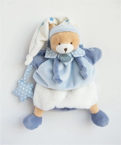 Medvedek iz pliša in lutka na roko v enem, idealen za pomirjanje in igro. Prinaša ne le mehkobo, temveč tudi čar pripovedovanja zgodb.