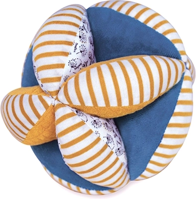 Žogica je izdelana iz dvanajstih mehkih delov, ki delujejo kot oprijemi za otroške roke. Ta zasnova omogoča krepitev rok, vadbo vida in pomaga pri razvoju otrokove koordinacije. Izvirno darilo ob rojstvu otroka, na voljo v različnih dizajnih in poslano naključno.