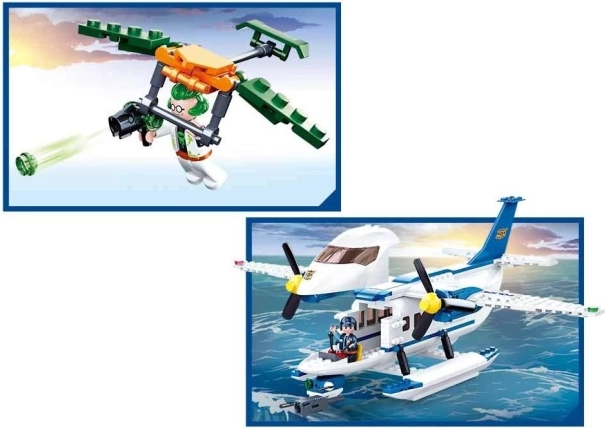 Zgradite si akcijski svet s sestavljanko SLUBAN – policijsko hidro letalo z lopovi. Set ponuja 380 delčkov, 3 figurice in prefinjene podrobnosti, kot so odstranljiva streha kabine in sprednji mitraljez. Kakovosten ABS plastika, združljivost z LEGO in drugimi znamkami ter srednja zahtevnost zagotavljajo odlično zabavo in razvoj spretnosti.
