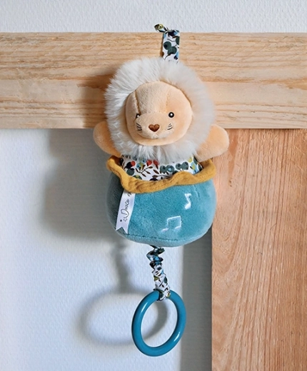 Ta mehki levček je opremljen z navijalnim mehanizmom, ki predvaja nežno uspavanko za mirno uspavanje in pomiritev čez dan. Zaradi prijetnih materialov je primeren že od rojstva in bo postal dragocen spremljevalec vašega dojenčka.