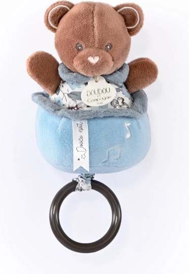 Ta mehkužen medvedek je dragocen spremljevalec vaših najmlajših. Po navijanju predvaja prijetno, nežno melodijo, ki pomaga dojenčku, da se umiri, sprosti in lažje zaspi. Zaradi kompaktne velikosti 20 cm je odlična izbira za posteljico, voziček in potovalno torbo.
