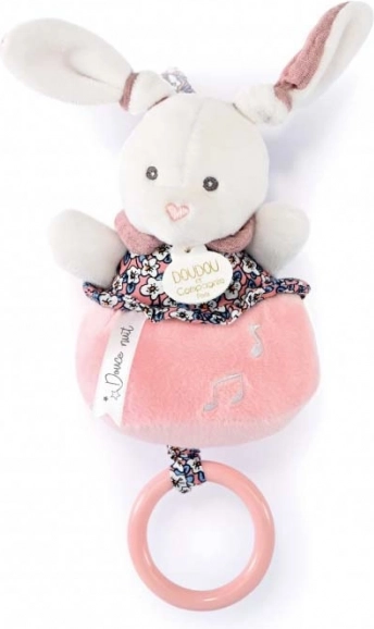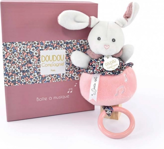 Prisrčen rožnat zajček iz darilnega kompleta DOUDOU je na navijanje in predvaja pomirjujočo melodijo, ki dojenčka pospremi v spanec. Nežen pliš, uspavanka in stilna darilna škatla ga naredijo za idealno darilo za novorojenčka.