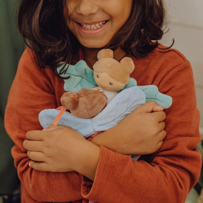 Spoznajte punčko Taro – nežno metuljčico v vijolični obleki, z modrimi krili in modnimi dodatki. Zaradi mehkih materialov je idealna za crkljanje in prve igre najmlajših. Izvezene podrobnosti na obrazu zagotavljajo varnost brez drobnih delcev.