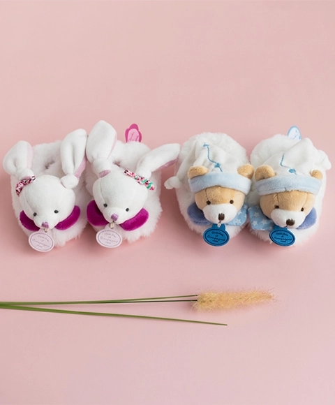 Ta ljubek komplet copatkov z motivom zajčka je odlična izbira za prva darila, pozdrav novorojenčka in kot stilski dodatek otroški garderobi.