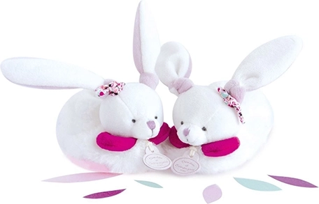 Iščete ljubko in praktično darilo za dojenčka? Ta darilni komplet vsebuje mehke plišaste copatke z vgrajenimi ropotuljicami v obliki zajčka, ki ohranjajo dojenčkove nožice tople ter nežno spodbujajo čutno zaznavanje. Priložena je elegantna darilna škatlica, zato je pripravljeno za takojšnje podarjanje.