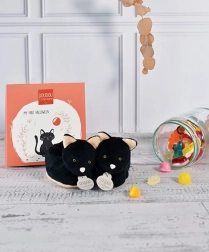 Iščete izvirno in praktično darilo za novorojenčka? Plišasti čeveljčki DOUDOU z motivom črne mačke so nežni do občutljive otroške kože in zanesljivo grejejo. Igriv dizajn doda otroškemu outfitu pridih šarma – tako na zabavi za noč čarovnic kot pri vsakodnevnih sprehodih.