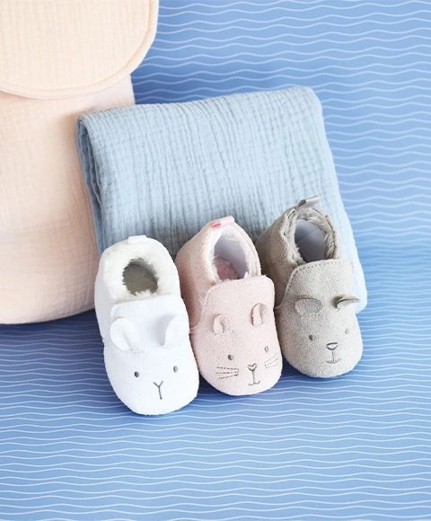 Ljubki rožnati copatki za dojenčke, stare 0–6 mesecev, v elegantni darilni embalaži. Mehka notranja podloga iz kožuha ohranja nožice tople in doda dojenčkovemu outfitu udobje, mehkobo in kanček domišljije. Krasi jih nežno izvezen mačji obraz in kakovosten material iz 100 % poliestra, ki izpolnjuje evropske standarde CE.