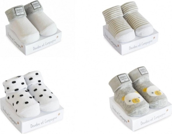 Stilske in udobne dojenčkove nogavičke DOUDOU v darilni embalaži za dojenčke 0–6 mesecev. Idealne kot izvirno darilo ob rojstvu, v univerzalnih barvah, ki jih je enostavno kombinirati. Nogavičke so mehke, trpežne in prijetne na dotik. Cena velja za 1 par.