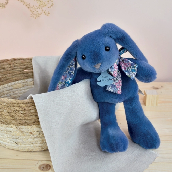 Ta modri plišasti zajček je idealen prvi prijatelj za novorojenčka. Je mehak na dotik, varen in izpolnjuje evropske standarde CE. Zahvaljujoč kompaktni velikosti 25 cm ga zlahka držijo tudi najmanjše ročice in postane zanesljiv spremljevalec v posteljici in na poti.