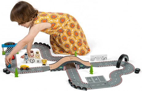 47-delni set vključuje dirkalne avtomobile, pódium za zmagovalce, nadvoz in več.
