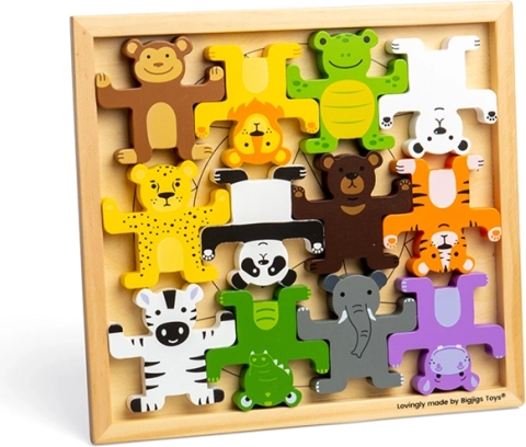Ta igra je idealna za razvijanje fine motorike, kreativnosti in domišljije otrok. Igralci se izmenjujejo pri zlaganju lesenih figuric eno na drugo, tisti, ki se mu figurice podrejo, pa izgubi. Ta pristop ne le uri potrpežljivost in logično razmišljanje, temveč prinaša tudi ure zabave.