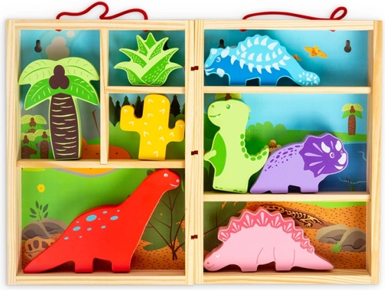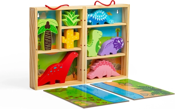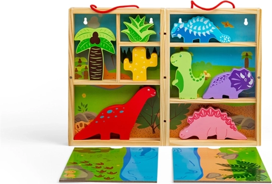 Ta prenosna igrača s temo dinozavrov je idealna za otroke od 18 mesecev, ki želijo odkrivati svet dinozavrov ter razvijati svojo ustvarjalnost in domišljijo. Spodbuja ustvarjalnost in domišljijo, zaradi svoje zasnove je lahko prenosna in idealna za potovanja.