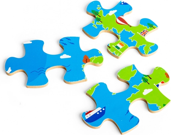 Te barvite talne puzzle spremenijo učenje geografije v zabavo. Otroci sestavljajo države glede na obliko in lego, odkrivajo njihove zastave in značilne znamenitosti ter naravno razvijajo besedni zaklad in orientacijo na zemljevidu. Veliki in vzdržljivi kosi so idealni za majhne roke ter spodbujajo sodelovanje in samostojno igro.