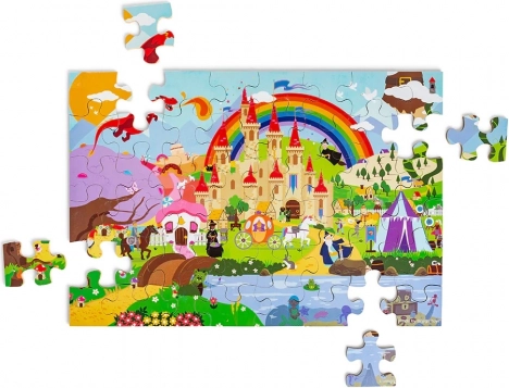 Lesena talna sestavljanka Bigjigs Toys Fantazijski svet, 48 kosov. Spodbuja zbranost, motoriko in domišljijo. Kakovostni materiali, varno od 2 let naprej.