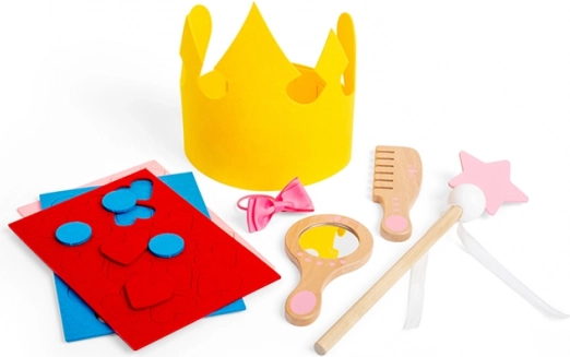 Krona, ogledalce, glavnik, rokavice in čarobna paličica razširijo igro z novimi scenariji in podprejo domišljijo.