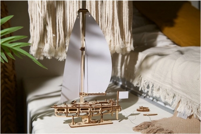 - Kakovosten material – natančno izrezani leseni deli, čiste linije, belo jadro.
