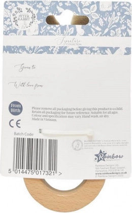 Nežno ropotanje spodbuja radovednost in osredotočenost, medtem ko gladek lesen obroč pomaga masirati dlesni in pomiriti nemirne zobke. Brezčasen dizajn, navdihnjen s klasičnimi zgodbami BEATRIX POTTER, je čudovit dodatek vsaki otroški opremi.
